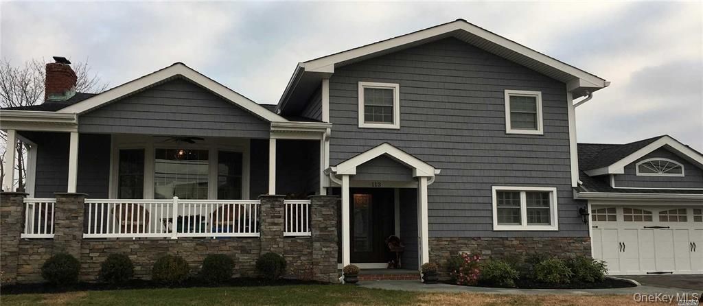After a long day at the beach, settle on your porch and take in an amazing sunset with views of the Great South Bay and warm western exposure. As you enter the foyer, you are greeted with an inviting inlay in the hardwood plank flooring taking you to your spacious family room with sliding doors to a covered patio, a few steps up lead to your open concept living room, dining room and gourmet kitchen with hardwood floors throughout. Living room with vaulted ceilings, bay window and wood-burning fireplace, the heart of this home includes a center island, quartz counters, double wall oven, built-in breakfast nook, custom lighting and cabinetry, Primary Bedroom includes walk-in-closet and ensuite, full finished basement is yet another bonus area to this sprawling split-level home. Mature landscaping hugs the property providing a park-like feel and substantial privacy as you enjoy the summer nights that await you.